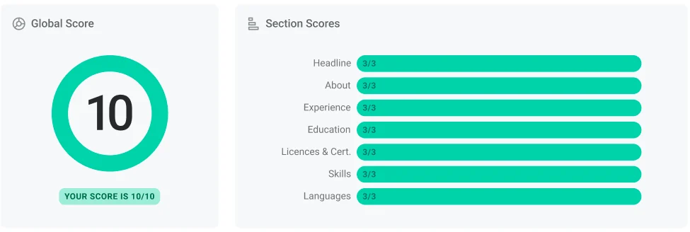 Notre outil de vérification de profil LinkedIn est conçu pour mettre en valeur chaque section et démontrer que vous êtes le candidat idéal pour le poste.