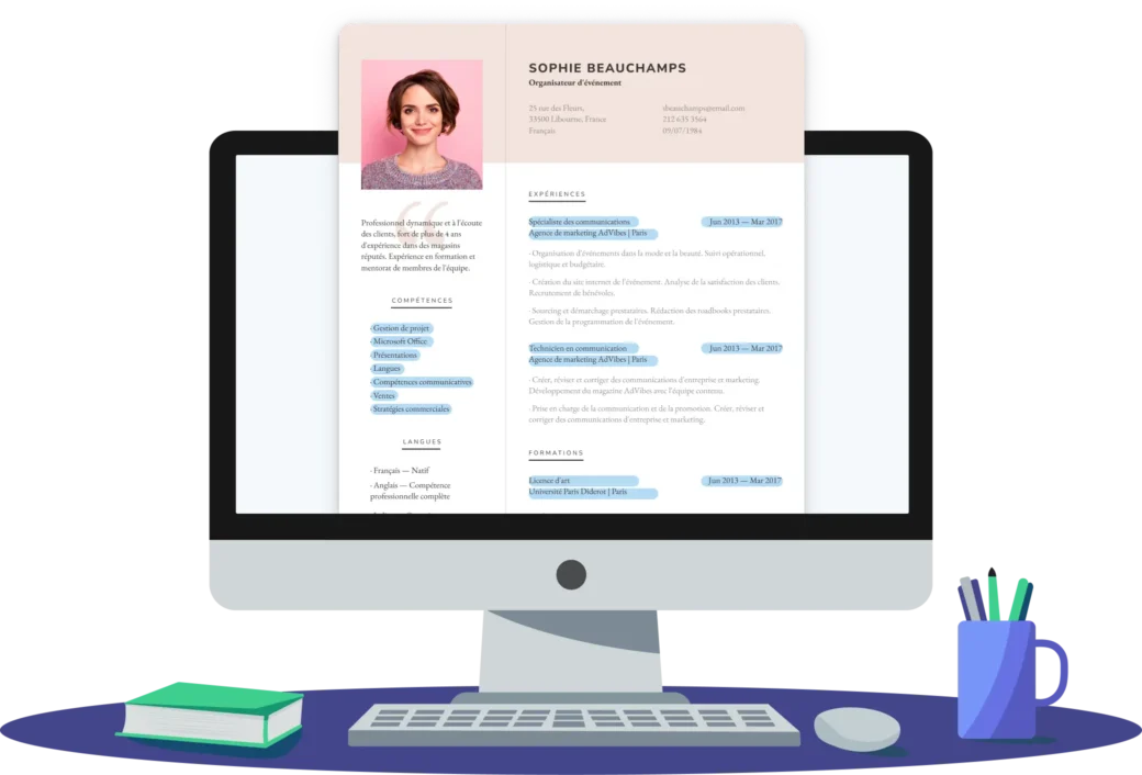 Nos suggestions de contenu contiennent également des mots clés pour que votre candidature passe les filtres mis en place par les recruteurs.