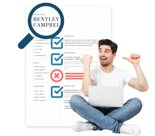 Notre outil basé sur l’IA passe en revue la mise en page, les mots-clés et la structure de votre document pour vérifier qu’il est adapté aux ATS et ne sera pas rejeté par ces systèmes de tri automatiques.